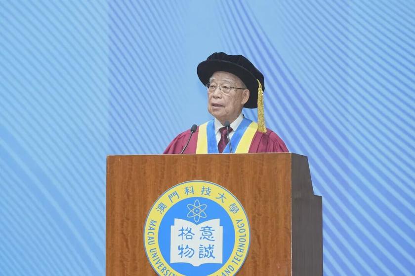 澳科大副校監、校長李行偉致辭時稱,大學授予設立榮譽院士,旨在表彰成就卓著、並對大學與社會貢獻非凡的傑出人士。榮譽院士不僅是澳科大的驕傲,他們的成就將激勵青年學子薪火相傳,樹立楷模。