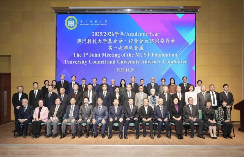當日下午,澳科大亦於大學N101大禮堂召開2025/2026學年澳科大基金會、校董會及諮詢委員會第一次聯席會議。47位基金會成員、校董、諮詢委員出席會議。會議由澳科大基金會信託委員會主席崔世昌主持。李行偉校長代表諮詢委員報告工作情況,同時他亦報告了大學2025/2026學年工作總結及發展規劃,並且表示歡迎新校董的加入;校董會主席廖澤雲表示,澳科大與澳門各高校共同推動了高教發展,澳科大首屆內外全科醫學學士畢業生,提升了澳門醫療水平。大學未來將繼續推動國際化戰略,同時深化與大灣區的合作,並促進學科交叉發展。