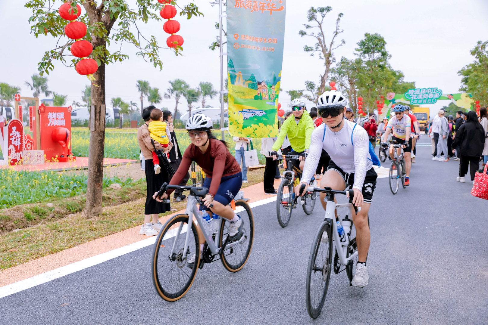開幕式尾聲,“騎遇珠中江”珠中江花田騎行活動正式啟動,來自粵港澳的100位自行車愛好者穿梭於千畝油菜花田間,成為春日裏的一道風景線。珠中江三地還攜手打造九條特色騎行線路,珠海線路融合自然生態與人文韻味,中山線路串聯花田與水鄉風情,江門線路盡顯碉樓遺產與僑鄉古韻,以車輪為紐帶串聯珠西春日美景。