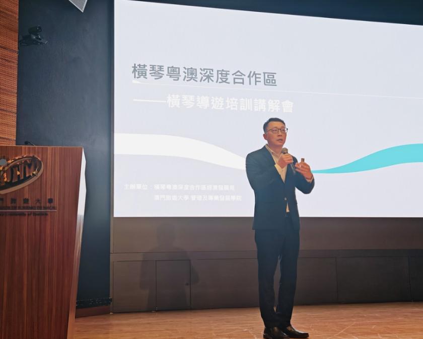 由澳門旅遊大學與橫琴粵澳深度合作區經濟發展局聯合主辦的 “橫琴導遊培訓講解會”於1月30日在澳門旅遊大學順利舉行。活動以“港澳導遊在橫琴的發展新機遇——政策、培訓與職業前景” 為主題,吸引超過100名現職導遊、旅遊業從業人員及旅行社、景區管理機構代表參與,通過政策解讀、培訓推介與行業對接,暢通港澳導遊赴橫琴執業渠道,助力粵港澳大灣區文旅融合發展。