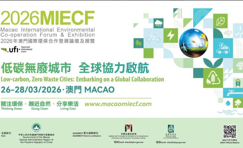 由澳門特別行政區政府主辦的“2026年澳門國際環保合作發展論壇及展覽”(2026MIECF)以“低碳無廢城市 全球協力啟航”為主題,將於3月26至28日(周四至周六)假澳門威尼斯人金光會展舉行。