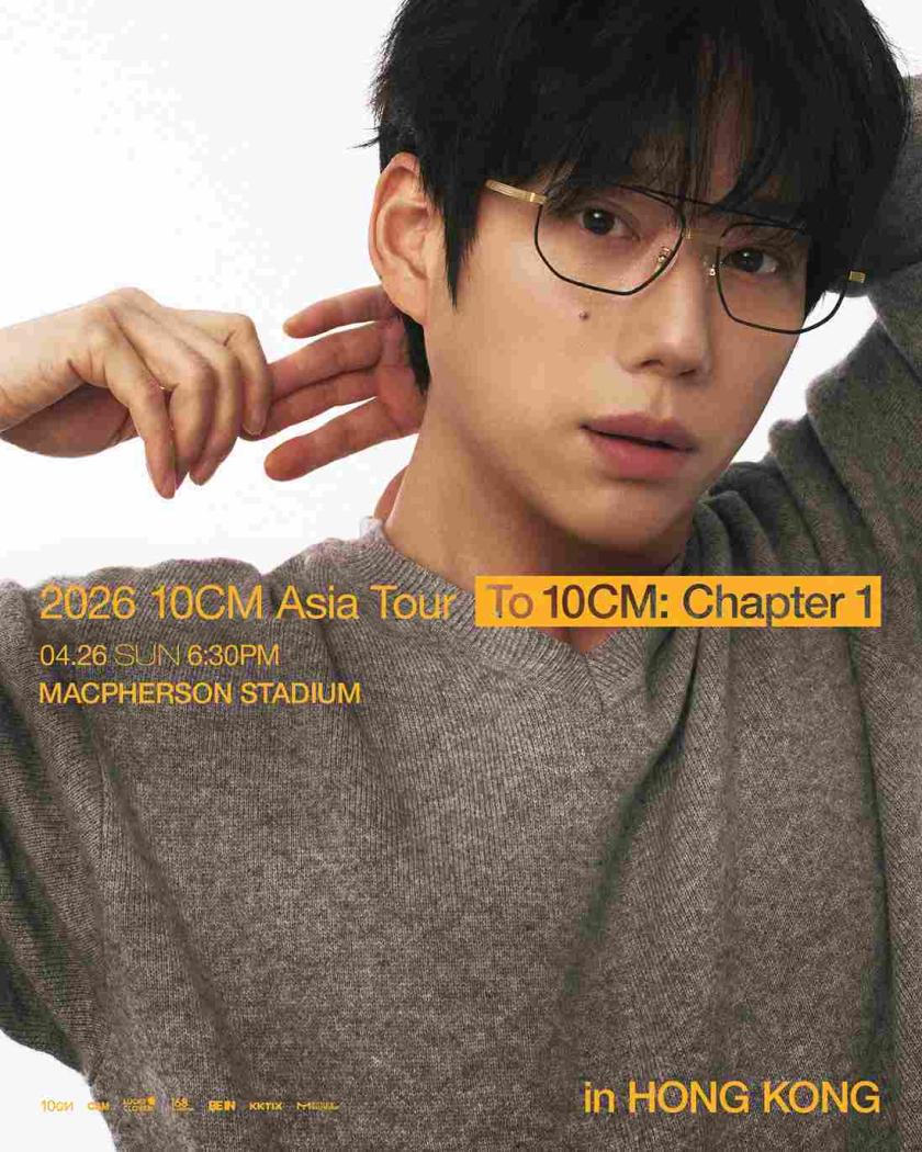 一直保留K-pop樂隊特色的10CM,憑藉獨立音樂宗旨,不論在韓國,還是海外也大受歡迎。而自從知道他的巡迴演唱會由今年1月在首爾開始,並途經曼谷、新加坡、台北、東京等地,樂迷已經非常關心香港站的情況。今天,主辦單位168 Production正式宣佈《2026 10CM Asia Tour <To 10CM: Chapter 1> in Hong Kong》,將於2026年4月26日在香港麥花臣場館盛大舉行!
