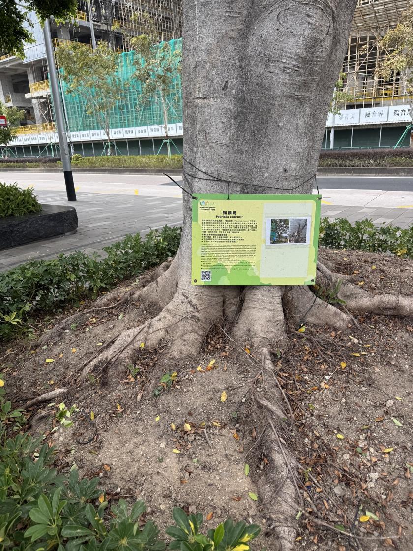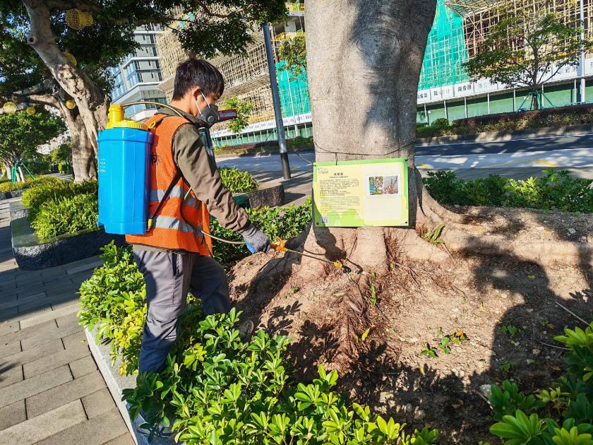 市政署持續巡查及護理各區街道樹木,以維護樹木健康及公眾安全。樹木養護人員經巡查發現觀音像海濱休憩區兩株榕樹感染褐根病,正持續進行救治並已掛上告示牌,讓市民知悉樹木狀況。