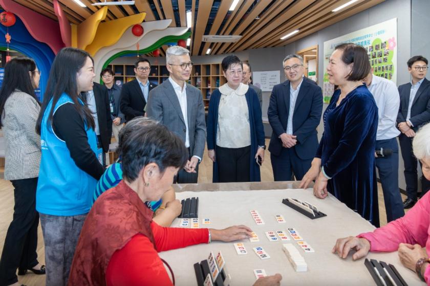 當天下午,戴建業一行首先到街坊總會橫琴綜合服務中心,在中心代表陪同下參觀內部設施設備,聽取介紹中心發展歷史以及歷年來開展民生公共服務的概況,了解中心目前可提供的服務內容。視察期間,戴建業還在中心內巡視了解居民使用各類民生服務及設施設備的實際情況,並不時駐足與正在休閒娛樂、康體保健或參加工作坊的長者親切交談,關心他們在橫琴生活居住的切身感受。