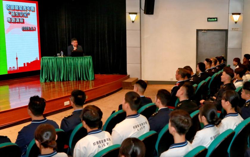 儀式後,由澳門大學法學院趙國強教授和司法警察局保安廳賴釗洪廳長以“國家安全”為主題進行專題講座,深入闡述《維護國家安全法》的重要意義、“總體國家安全觀”的內涵,以及澳門在推動國家安全工作的成效。在講座後的發問環節中,青年團員踴躍向講者提問,體現了對維護國家安全的高度關注和自身責任識。