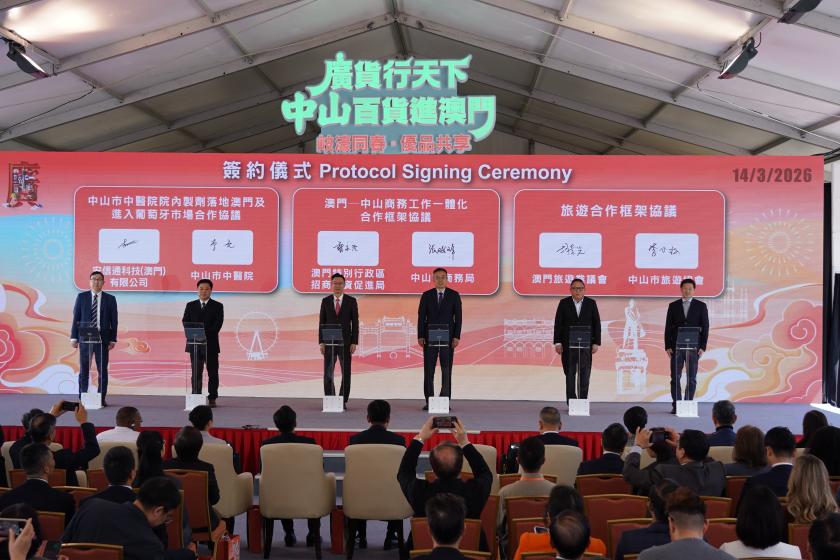 14日上午,「廣貨行天下·中山百貨進澳門——岐濠同春·優品共享」活動在澳門塔石廣場盛大啟幕。這是「廣貨行天下·中山百貨進N城」系列活動首次落地境外,在中山商貿對外交流、深耕大灣區並鏈接葡語系市場的發展進程中,具有里程碑意義。當天,中山市商務局與澳門特區招商投資促進局正式簽署經貿合作協議,進一步深化兩地經貿互通與產業協同,為共拓葡語系國家及大灣區商機奠定基礎。