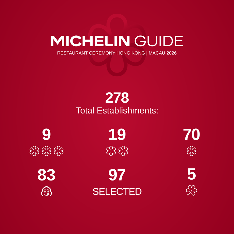 納入必比登推介名單後,《香港澳門米芝蓮指南2026》共計遴選278間優質餐廳,涵蓋香港219間、澳門59間,覆蓋星級餐廳、必比登推介、入選餐廳三大評級類別