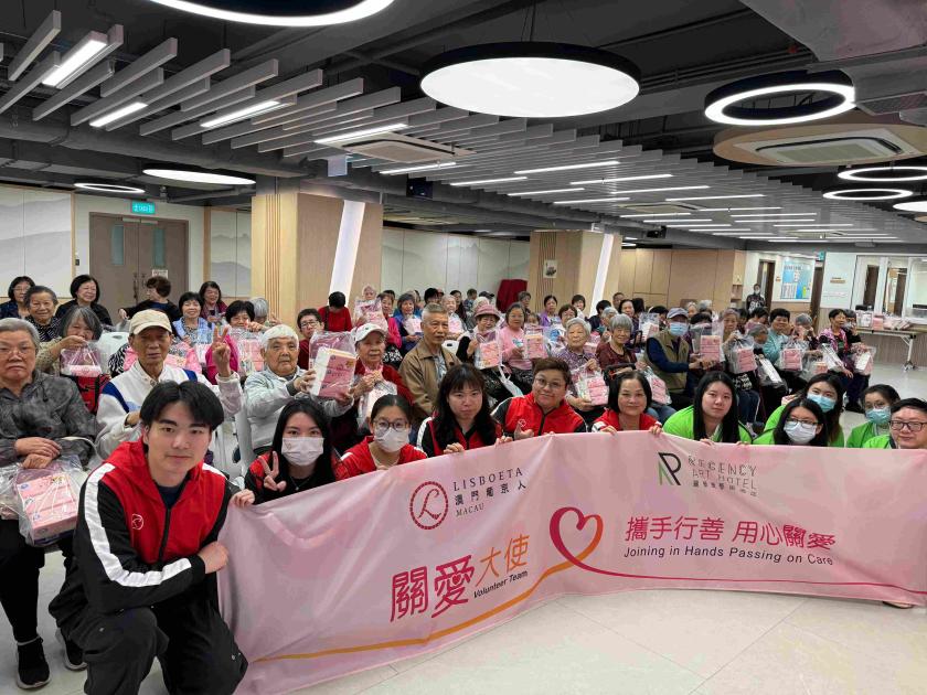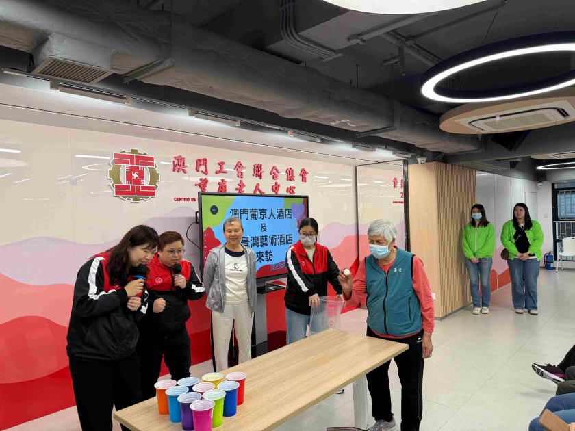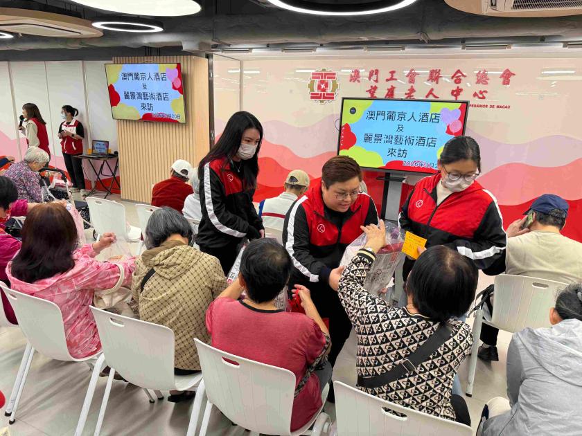 澳門葡京人及麗景灣藝術酒店秉持「攜手行善 用心關愛」的理念,組織「關愛大使」團隊成員前往「澳門工會聯合總會」屬下「望廈老人中心」進行慰問探訪,與近百位長者共度溫馨時光,傳遞真摯關懷,展現企業積極履行社會責任的承諾。