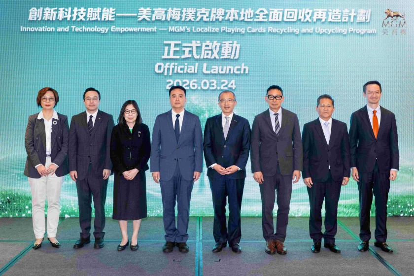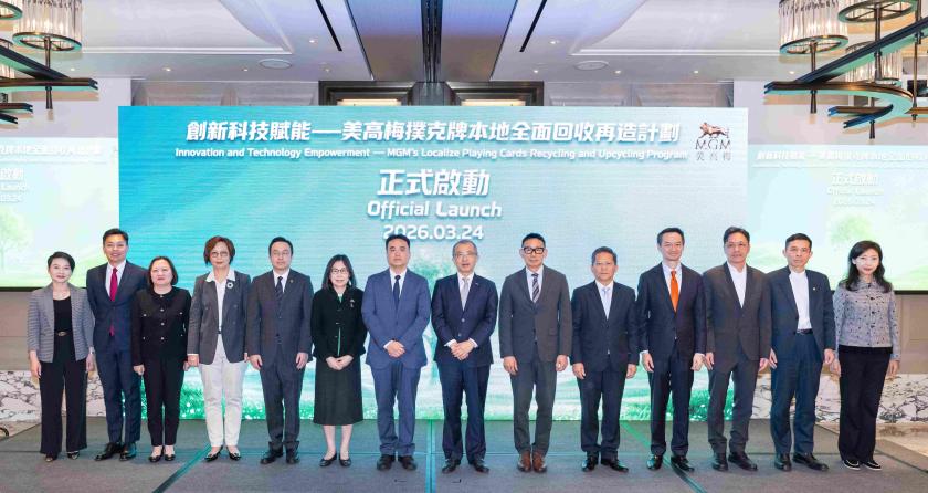 美高梅積極將可持續發展理念融入日常營運,持續響應國家「雙碳」目標、「十五五」規劃中提出的創新驅動與綠色低碳發展方向,並配合澳門特區政府《澳門長期減碳策略》,以創新科技推動產業革新,為澳門多元產業發展開拓更多應用場景。公司於今(24)日正式啟動「創新科技賦能—美高梅撲克牌本地全面回收再造計劃」,成為本澳首間實現撲克牌本地全流程回收再造的綜合旅遊休閒企業,進一步彰顯其推動綠色科技應用、廢棄物資源再利用,以及支持澳門經濟適度多元發展的堅定承諾。