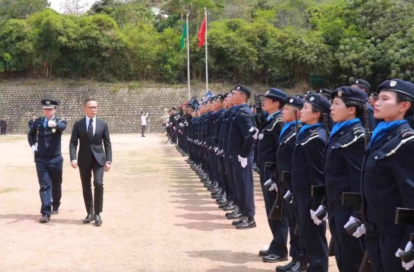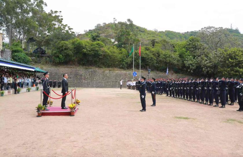 3月24日上午,澳門保安部隊高等學校(下稱“保安高校”)舉行“第三十三屆澳門保安部隊保安學員培訓課程及第十六屆澳門海關保安學員培訓課程”畢業典禮,由保安司陳子勁司長擔任主禮嘉賓,在眾嘉賓和家屬的共同見證下,113名學員順利畢業,其中46人成為治安警員,29人成為消防員,38人成為海關關員。