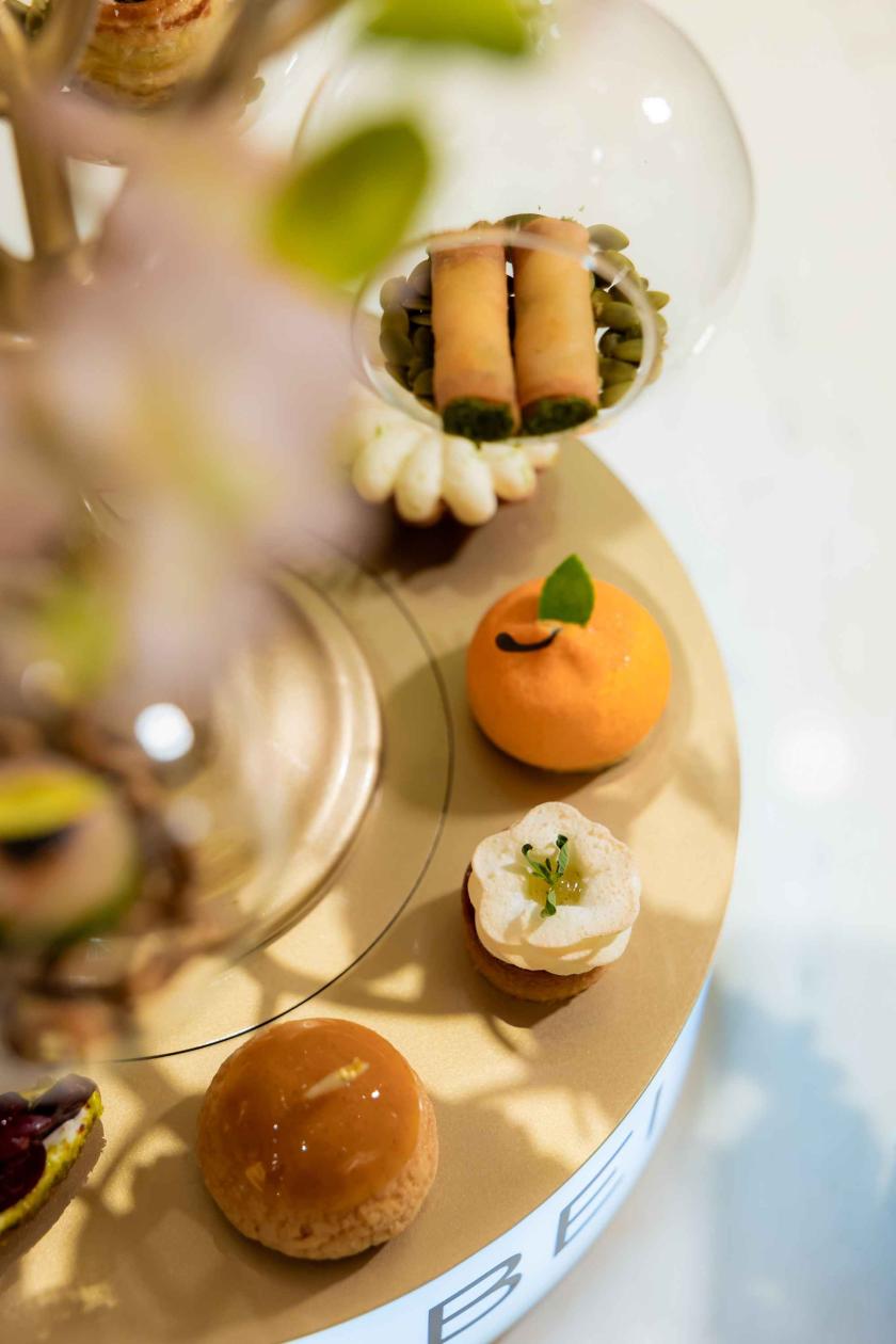 入席之際,迎賓飲品薰衣草微風率先揭開序幕,輕柔花香為午後時光添上雅致氣息。甜點精選果香之作:芒果香草撻交織熱帶明媚與柔滑香草,清新怡人;檸檬柚子羅勒撻以鮮爽酸香碰撞草本氣息;杏桃杏仁泡芙則輕盈平衡果香甜潤與堅果香氣。