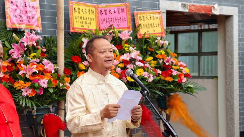 張大文會長在致辭中表示,黑沙村大王廟擁有一百多年歷史,是村內最具歷史價值的廟宇建築。每年農曆二月十五日,村民自發舉行「大王寶誕」慶祝活動,既是對傳統風俗文化的傳承,也是凝聚村民、弘揚互敬互愛傳統的重要載體。他提到,近年特區政府在廟宇保育與文化推廣方面成效顯著,未來互助會將持續发力,進一步加強地方傳統民俗文化的保護與推廣,推動文化遺產薪火相傳。