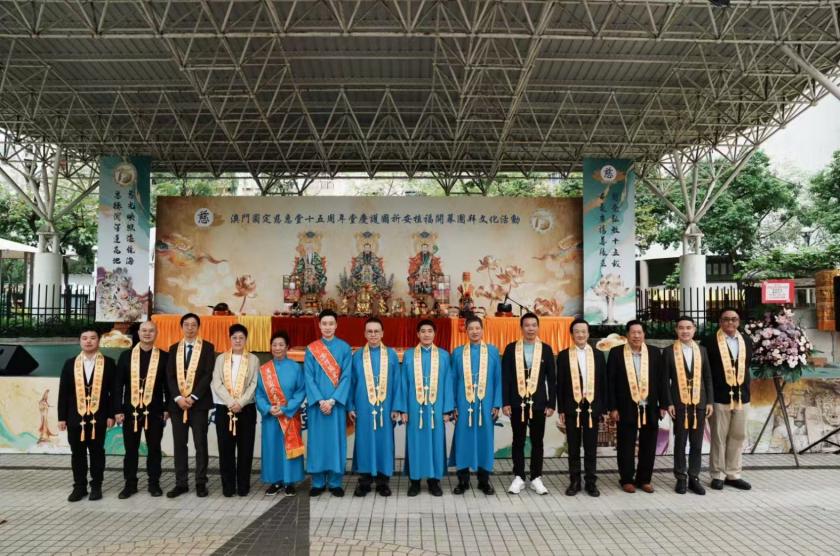澳門圓定慈惠堂慶祝開堂弘教十五周年系列活動之開幕接駕大典,今日上午十一時在祐漢公園廣場舉行,支持者眾,祈願無極瑤池西天王母娘娘聖恩德澤,慈光普照十方,護佑國泰民安、風調雨順、福澤濠江,信眾福慧增長。