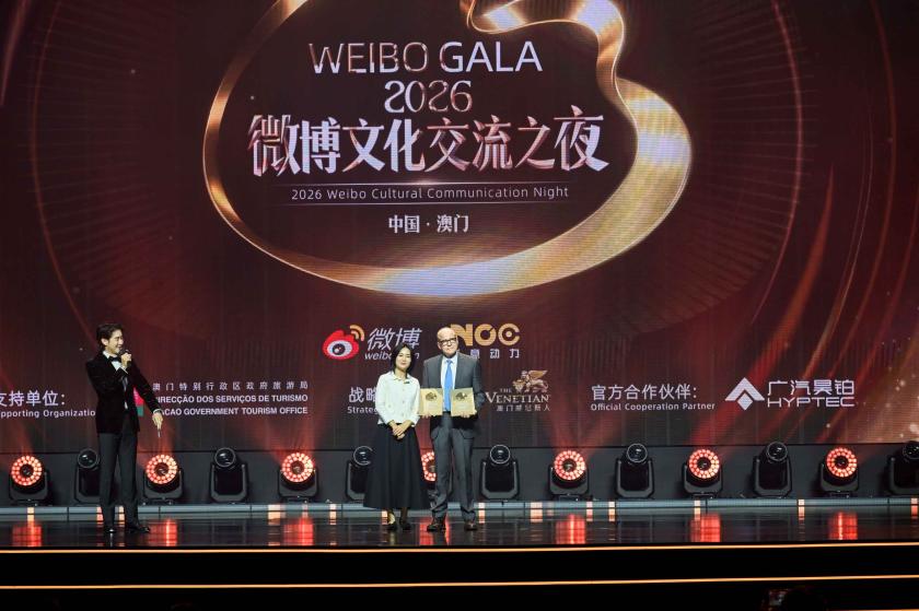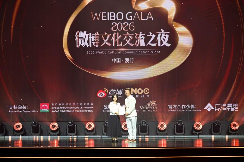 4月11日,“2026微博文化交流之夜-中國澳門站”在澳門·威尼斯人綜藝館盛大啟幕並圓滿落幕。本次盛典由微博主辦,新意動力承辦,金沙中國為戰略合作單位,澳門旅遊局為支持單位,以“金聲匯流年・鎏光共潮生”為核心主題,恰逢澳門回歸27周年,既是微博文化交流之夜國際系列的第四站,也是一場兼具文旅融合與文化出海雙重意義的文化盛宴,現場彙聚近百名政商精英、文體明星、文化名人,共赴這場跨越山海的文明之約。