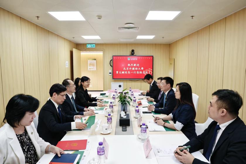 2026年4月24日,北京外國語大學校長、黨委書記賈文鍵率團到訪中西創新學院氹仔校區進行座談交流,雙方簽署合作備忘錄。座談會由中西創新學院院長仲偉合主持。會上,雙方共同觀看中西創新學院宣傳片。