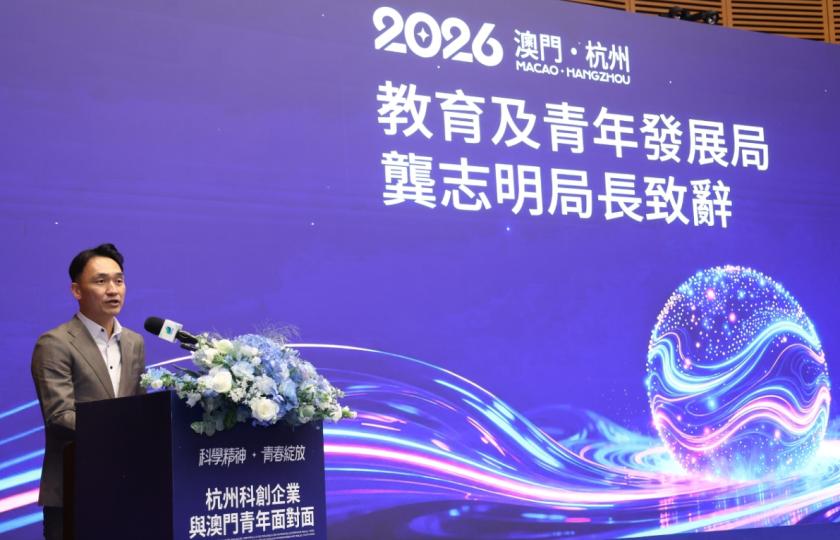 龔志明局長表示,國家“十五五”規劃明確將“加快高水準科技自立自強 引領發展新質生產力”置於戰略核心。特區政府全面對接國家戰略,築牢人才培養源頭工程。今次活動邀請到杭州優秀科創企業代表來澳,拉開澳門與杭州科技交流、青年互動的序幕,未來教青局會致力和杭州先進科創企業建立長遠合作機制。龔志明局長鼓勵青年學生要抓住機遇,開闊眼界,為澳門未來開創更多可能性。