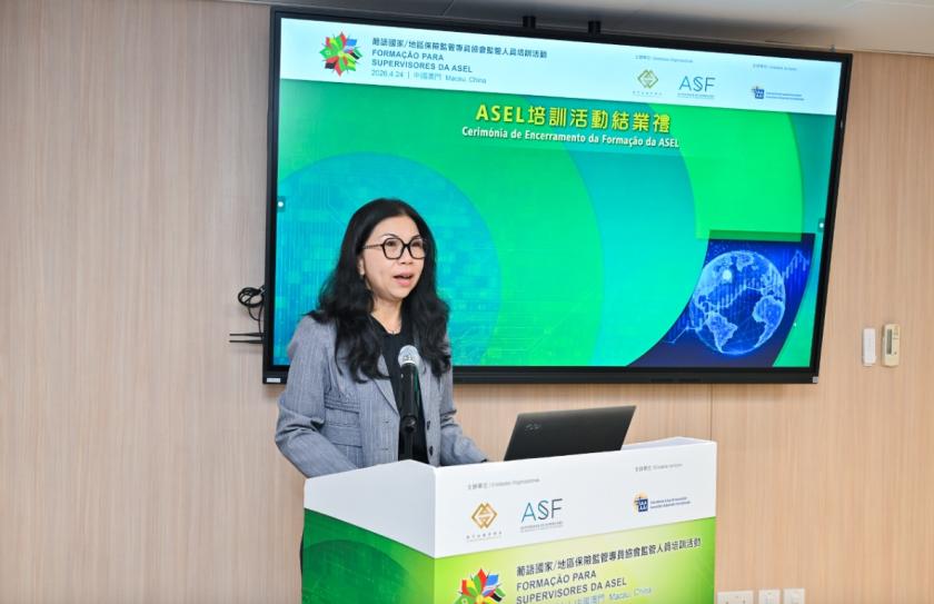 澳門金管局行政管理委員會委員陳君儀於結業禮致辭時表示,ASEL培訓活動有效構建了一個專業匯萃、經驗共享的實質平台,導師們的深入分享使各地監管人員受益匪淺。培訓活動不僅啓發了保險監管知識,更增進了葡語國家/地區彼此之間的認識,建立更深厚的友誼,為未來的葡語國家/地區金融監管合作奠定堅實的基礎。