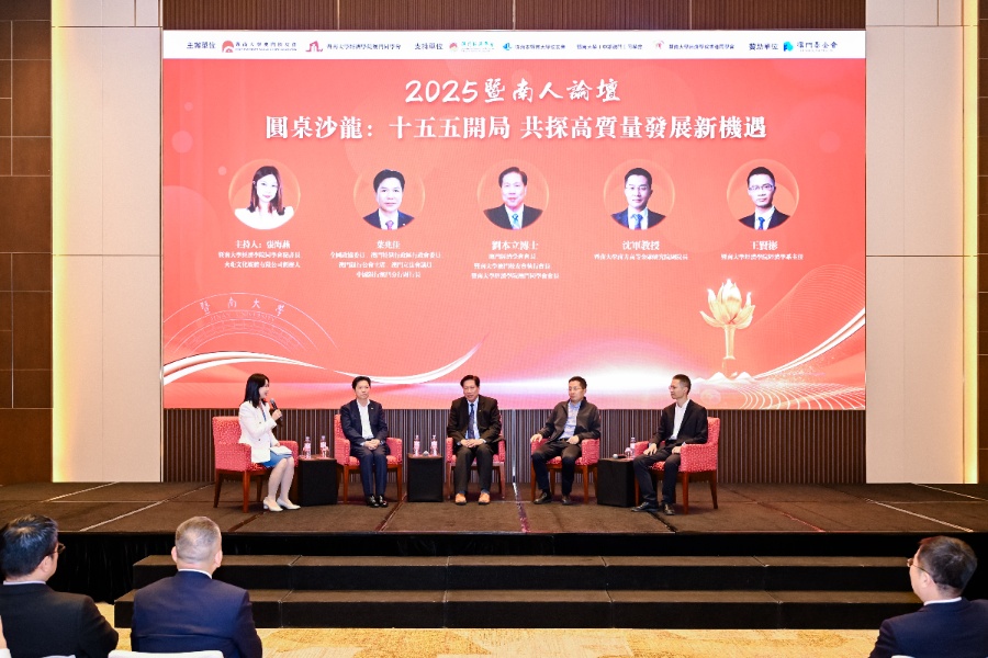 第四届暨南人论坛今日在澳门新濠天地君悦酒店举行。论坛以“粤港澳大湾区:迈向高质量,跨越新未来”为主题,汇聚近200位政商学界代表。本届论坛由暨南大学澳门校友会、暨南大学经济学院澳门同学会联合主办,获澳门基金会赞助。澳门中联办研究室主任管延斌、政策研究和区域发展局局长张作文、科学技术发展基金行政委员会主席余雨生博士等嘉宾出席。三场主旨演讲聚焦大湾区发展路径:蒋海教授分析金融风险防控;余雨生博士探讨澳...