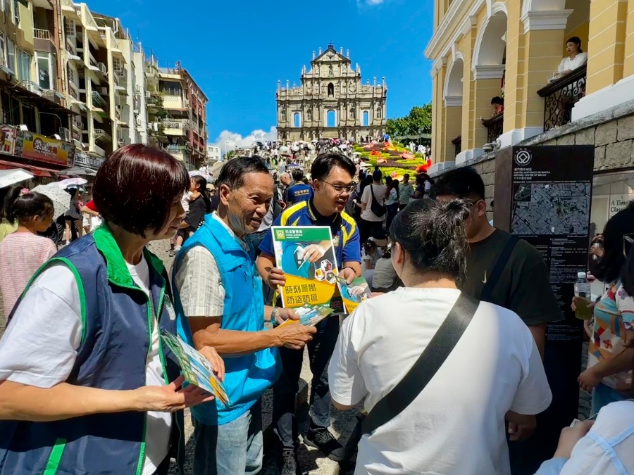 國慶長假期為訪澳旅客的高峰期,各旅遊區人流密集,不法分子往往伺機進行盜竊等犯罪活動。為提高市民及旅客對盜竊罪案的警惕意識與防罪能力,司法警察局派員聯同“司警局大廈防罪之友”成員展開防罪宣傳,向市民及旅客講解防盜須知,以有效預防盜竊案件發生。9月29日至10月10日期間,司警局第二統籌科及防止罪案科人員聯同澳門街坊會聯合總會、澳門工會聯合總會、澳門婦女聯合總會、澳門歸僑總會及民眾建澳聯盟等已加入“司...